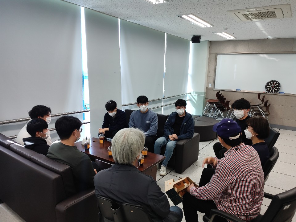 2020-2학기 2차 스마트IT 학생 지원 프로그램(ITSAP : IT Student Assist Program) 운영 ▶ IT 커리어 관리 프로세스 - 4학년:자격증, 이력서, 자소서, 포트폴리오 - 3학년:프로젝트, 공모전준비, SW설계구현 - 2학년:IT동아리, 배움공동체, 해외연수 - 1학년:봉사활동, 격주 자기주도 동아리활동 ▶ 교육과정 개선 활동 및 재학생 관리 - 실시간 소통 강화(학생-교수, 선배-후배, 상담 및 비교과지도) - 상담(학교생활, 출석, 비대면 수업 개선사항, 취업, 휴복학 등) - 1학년 3명, 2학년 5명, 3학년 14명, 교수3명, 조교1명 참여 ▶ 2020 학년별 앨범제작 경진대회 및 스마트IT리그 게임대회 시상식 진행 ▶ 프로그램 진행뒤 즐거운 회식~~~