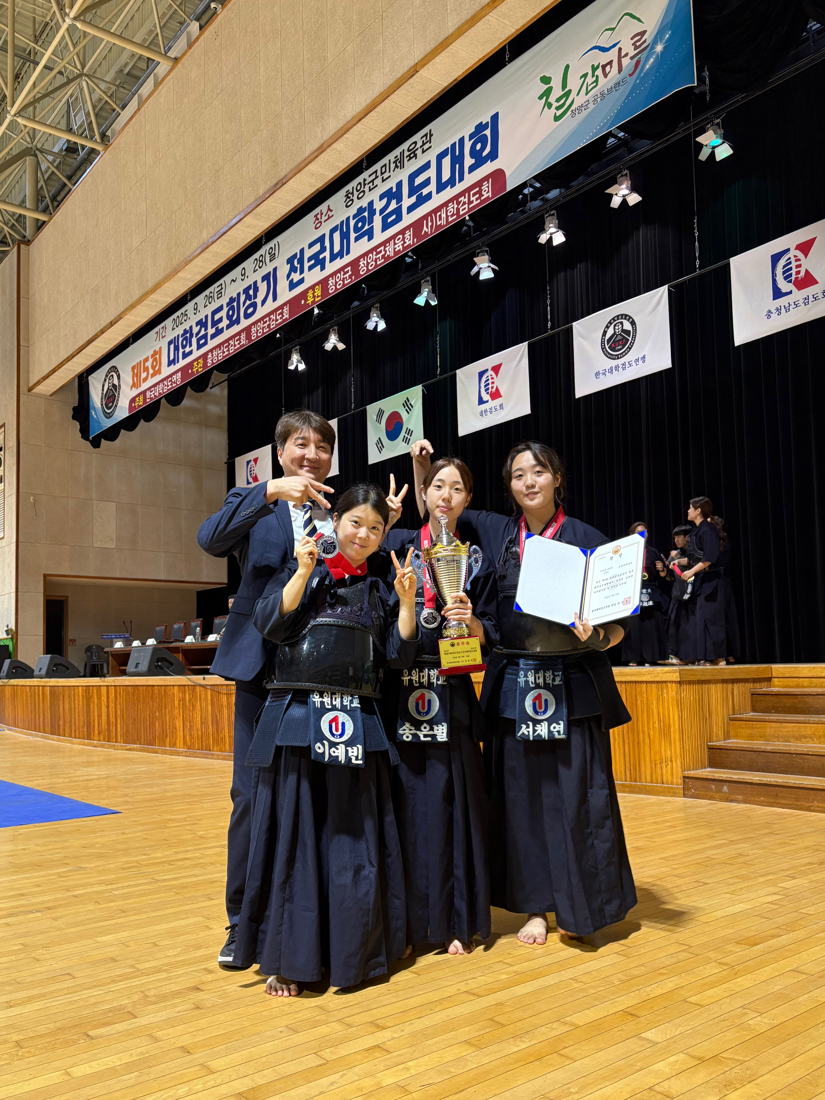 유원대 검도부는 지난 문화체육부장관배 남자부 단체전 3위에 이어 이번 대회에서도 연이어 성과를 거두며 대학 검도 명문으로서 입지를 공고히 하고 있다이는 스포츠학부 김민환 교수의 체계적인 지도와 선수들의 끊임없는 노력의 결실이다.